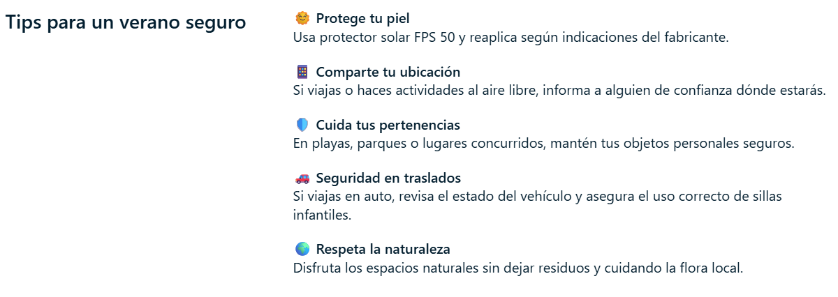 Lanzamos la campaña informativa “Un verano seguro comienza contigo” para acompañarte durante esta temporada con consejos prácticos para tu bienestar y seguridad.