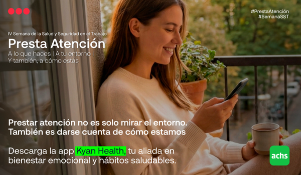 Además, para complementar las actividades de la semana, ACHS te invita a explorar Kyan Health, una herramienta digital que apoya el cuidado del bienestar mental y la prevención temprana. Disponible para iOS y Android.